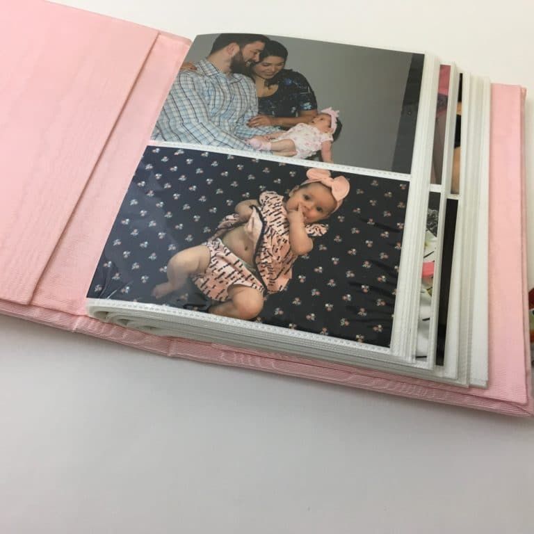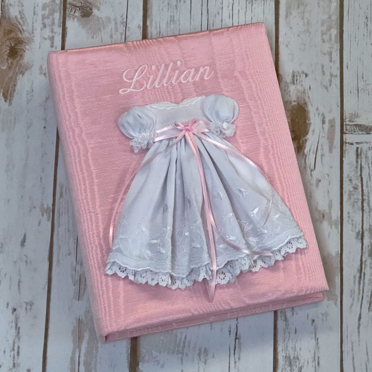 Personalized Medium Hardbound Photo Album in Moiré with Swiss Batiste Dress