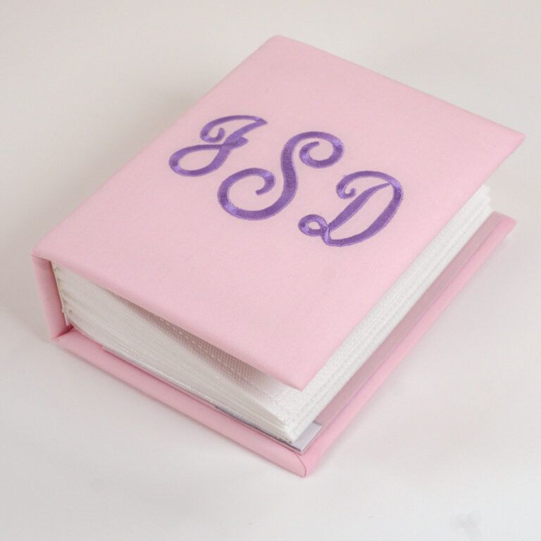 Capture and personalize your memories with this Personalized Small Hardbound Photo Album in Malibu cotton. The fabric wrapped photo album measures 5" x 6.5" and contains 50 PVC-free, acid-free pocket pages with space to hold 100 photos up to 4" x 6". Personalize with a name, monogram or initials.